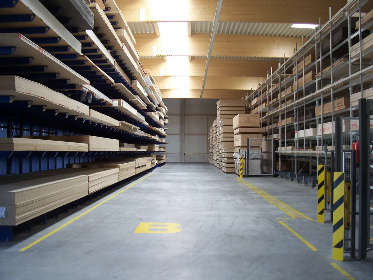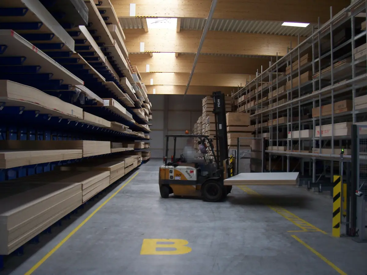 In der Lagerhalle läuft ein automatisches Regalierungssystem, der Kommissionsbereich hat ein eingegliedertes Büro im Obergeschoss. Zum Versetzen sperriger Bauteile und Platten ist die Kommissionshalle mit einem Brückenkran ausgestattet. Die Teilbereiche sind mit Brandwänden voneinander getrennt.