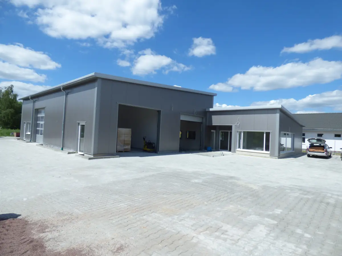 In einem B-Plan-Gebiet ist eine TÜV-Prüfstelle mit der erforderlichen und gewünschten Ausstattung wie Gruben, Prüfständen, angegliedertem Prüf- und Bürobereich, Kundenwartezone etc. in Stahlleichtbauweise entstanden.