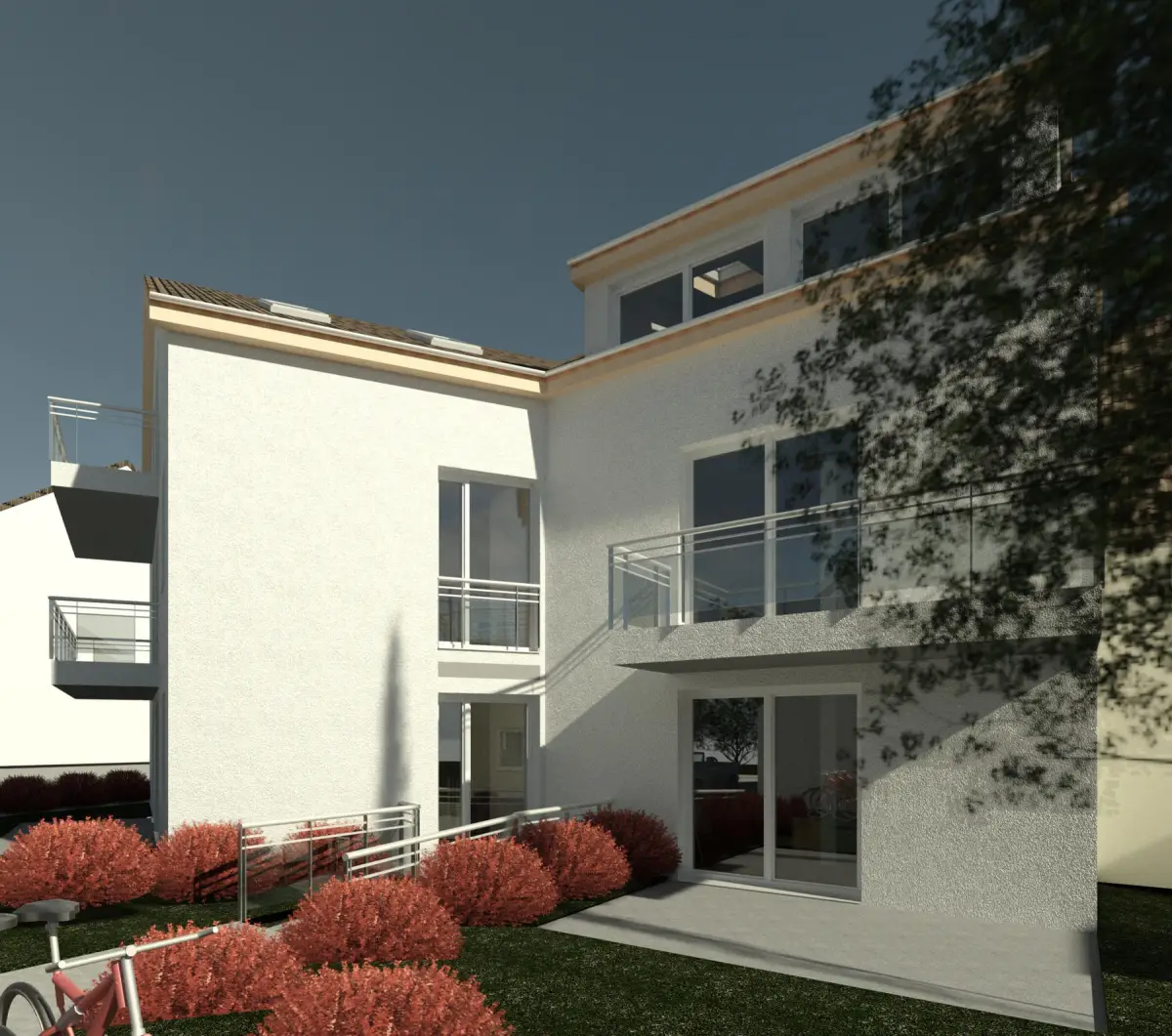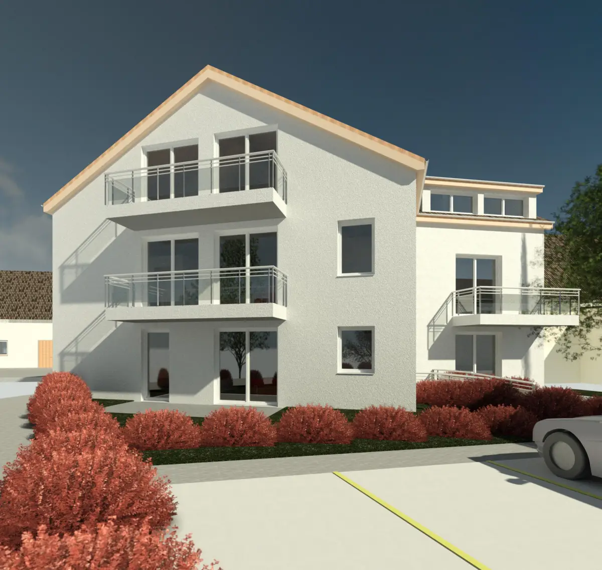 Die Wohnungen liegen über drei Ebenen verteilt, im Erdgeschoss befinden sich 3 barrierefreie Wohnungen, je 2 weitere Wohnungen auf den beiden anderen 2 Etagen.
