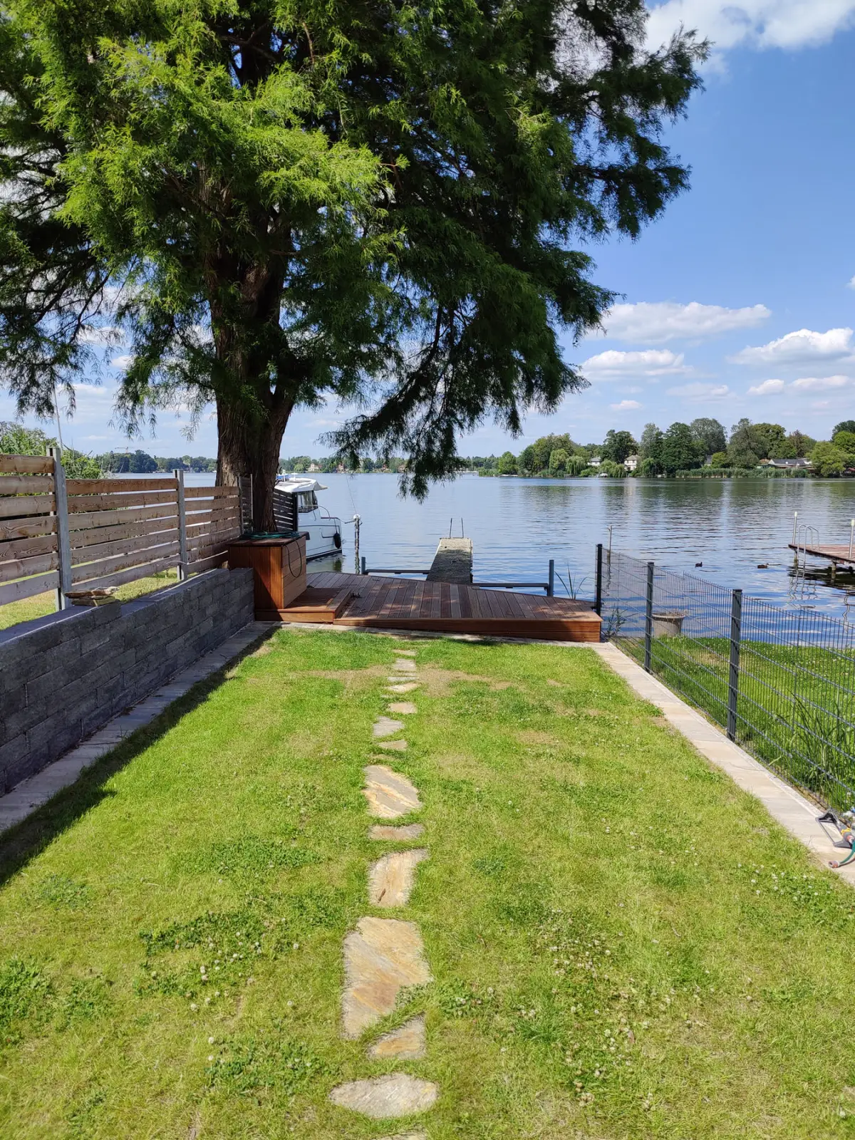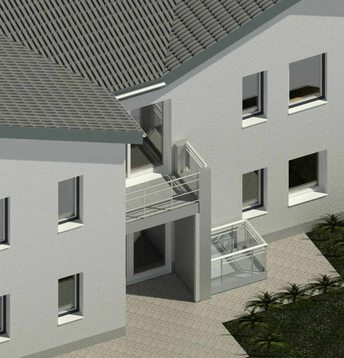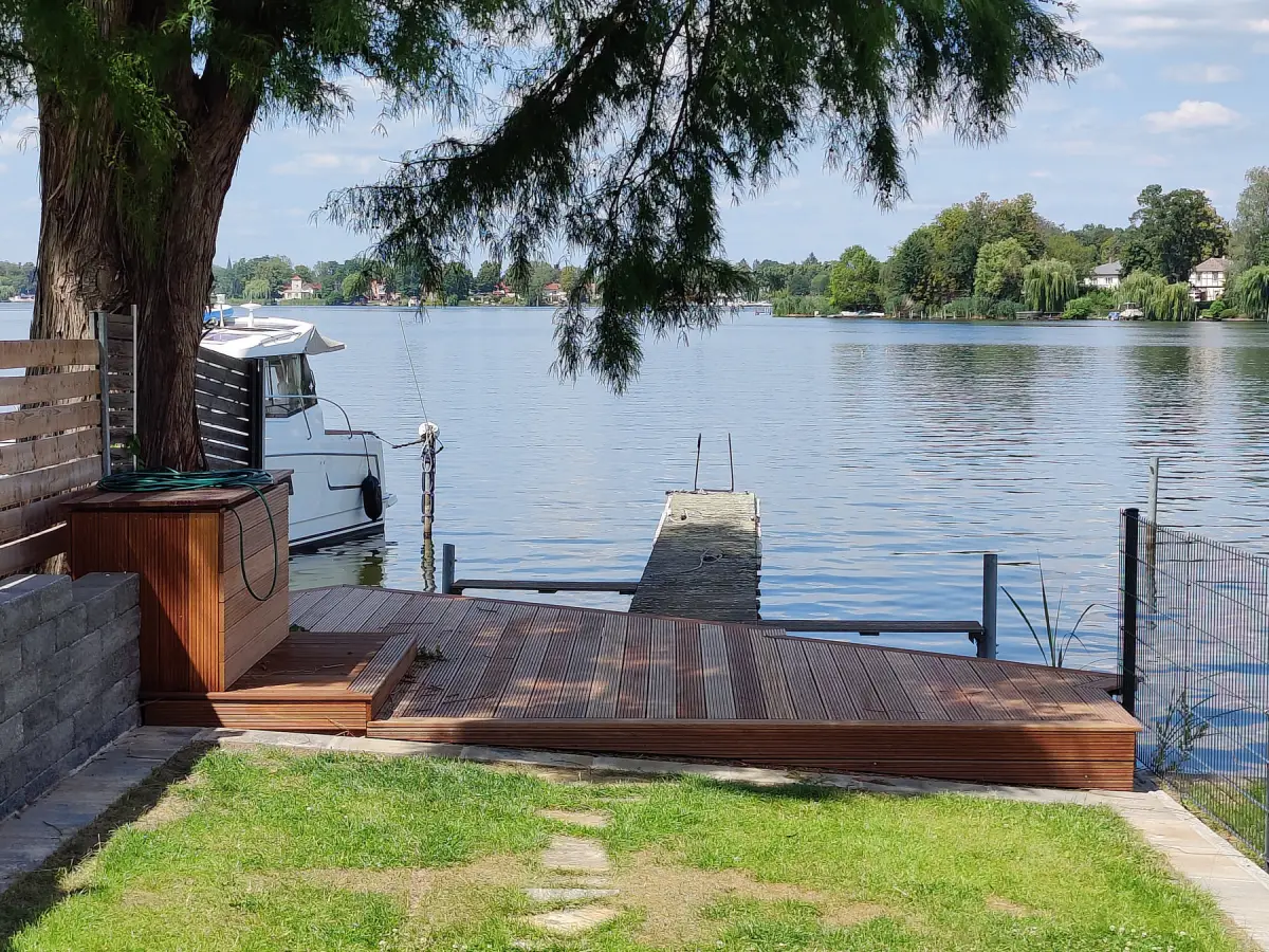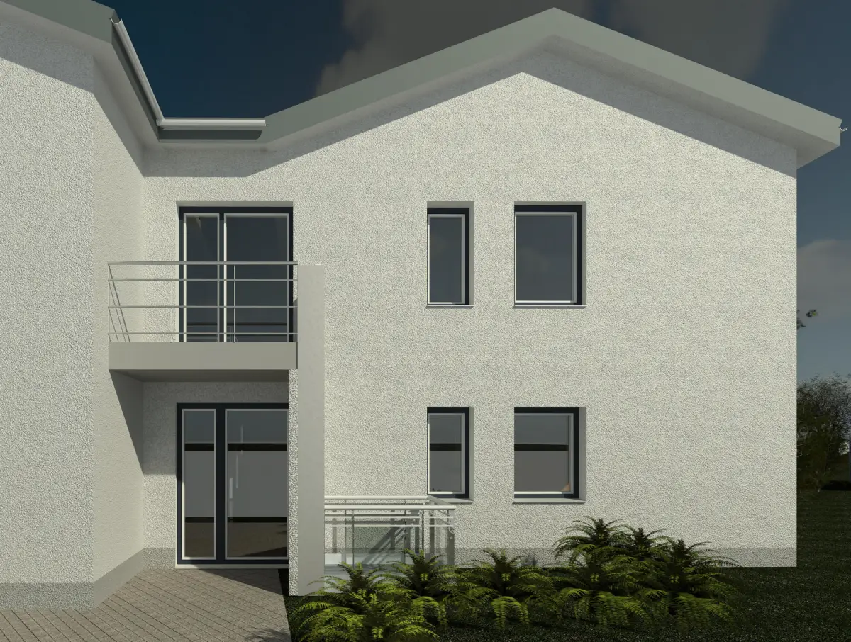 Weil das Objekt ihm so gut gefiel, wurden die Pläne während der Arbeiten erneut angepasst und die obere Ebene wurde zu einer gemeinsamen Wohnung zusammengeführt, mit großem Balkon von der Küche aus und einem Terrassenartigen Überbau mit Blick zum See. Um für die Zukunft gerüstet zu sein wurde auch das Obergeschoss barrierearm überplant, für einen barrierefreien Zugang zum Obergeschoss wurde noch ein offener Cabrio-Lift neben dem Eingang installiert.