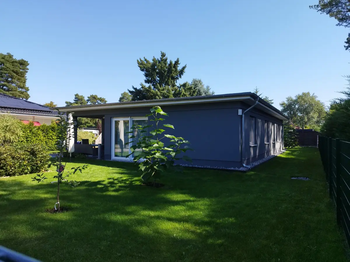 In einem weitläufigen Siedlungsgebiet von Königs Wusterhausen haben wir das Wohnhaus einer jungen Familie geplant. Das Haus sollte einfach und wartungsarm ausgeführt werden, die Decke massiv, und es sollte keine Treppen geben.