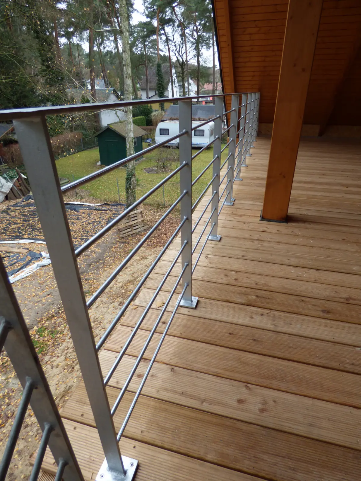 Im Erdgeschoss findet sich ausreichend Platz für eine Wohnung mit allen Annehmlichkeiten und hohem Sicherheitsbedürfnis, das Obergeschoss wird über eine außen liegende Treppe und die unter dem Dach eingezogene Terrasse erschlossen.